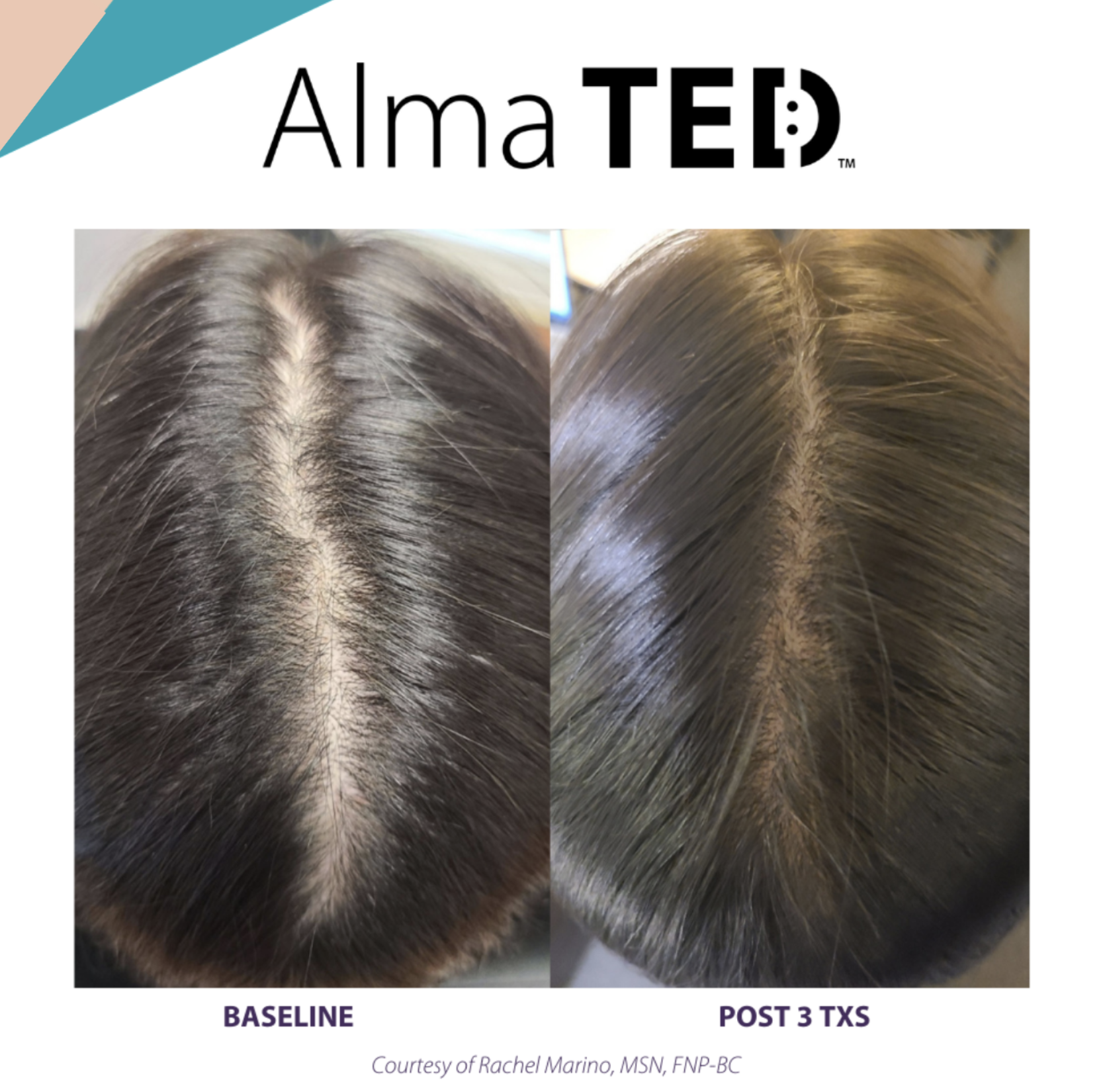 While TED is an advanced and highly effective treatment, it’s important to understand that results vary from person to person. We are unable to restore hair in areas where there is scarring or where hair has not grown for 5+ years, as those follicles are no longer active. This is not a miracle treatment but it is a powerful one. Many clients notice a difference early on: less shedding after the first session, a visible decrease in hair fall by session two, and early signs of regrowth by session three, with continued improvement over time.
